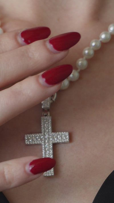 Ciondolo a forma di croce interamente impreziosito da zirconi.